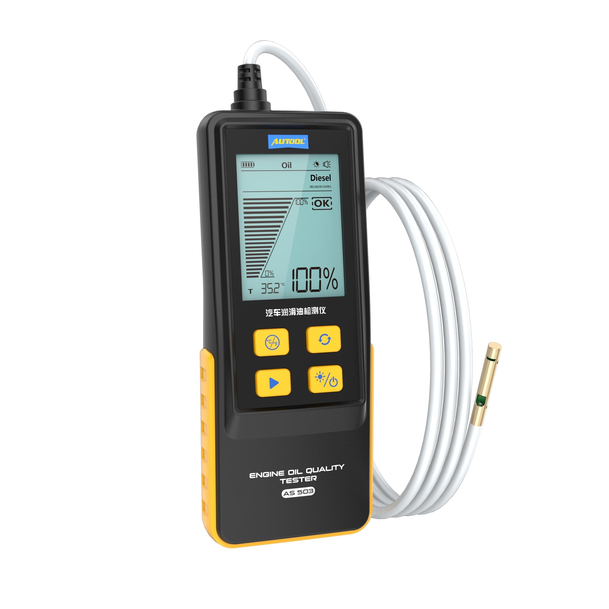 AUTOOL AS503 Motorolaj Teszter – Professzionális Motorolaj Minőség- és Hőmérsékletmérő Benzines és Dízel Járművekhez