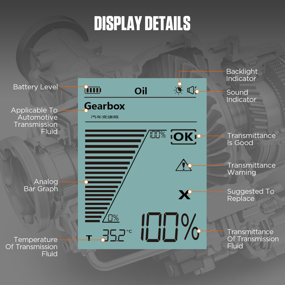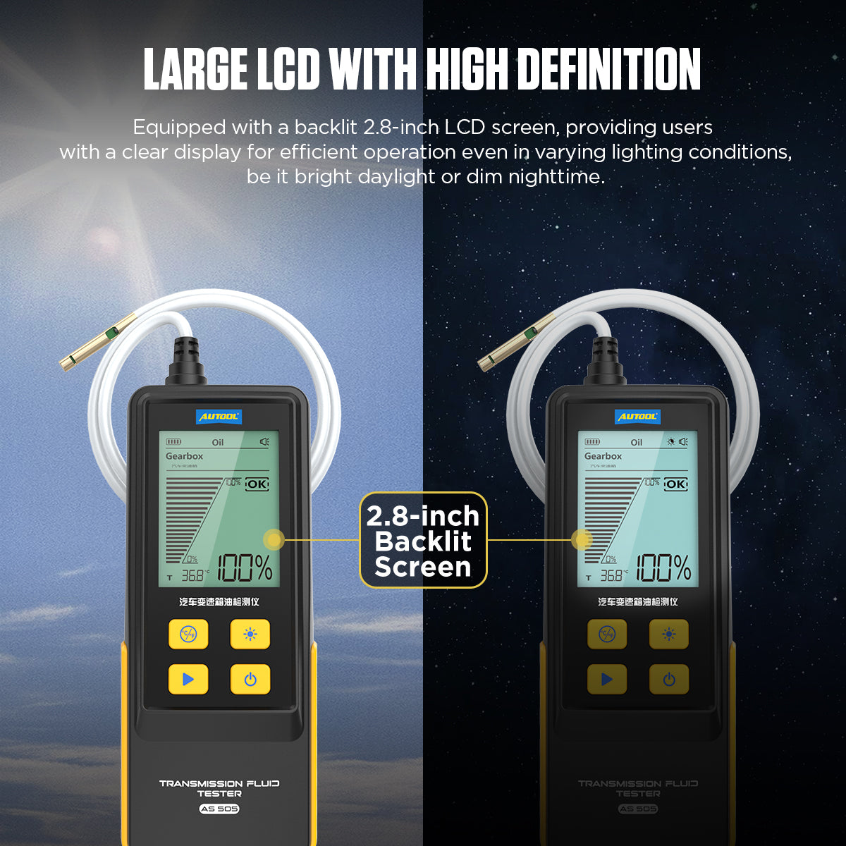 AUTOOL AS505 váltóolaj teszter magas pontosságú optikai érzékelővel, hőmérsékletméréssel és LCD kijelzővel. Ideális automata váltók karbantartásához. 3 év garancia.