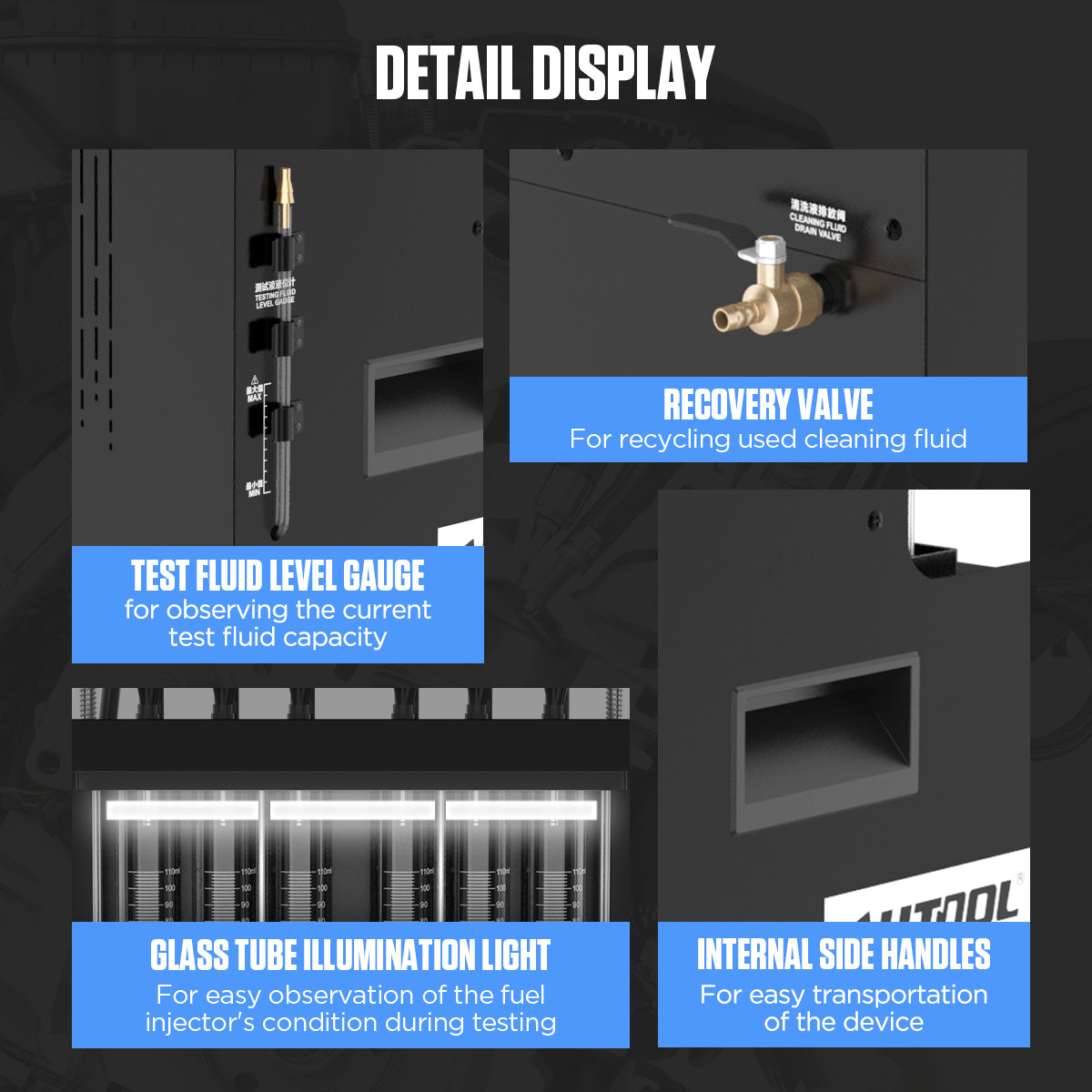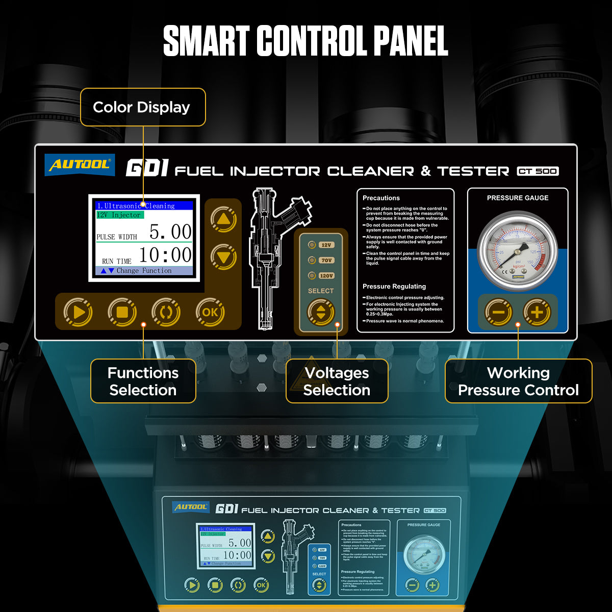 Az AUTOOL CT500 egy professzionális, 6 hengeres injektor tisztító és tesztelő berendezés, mely a legújabb GDI, EFI, FSI technológiákkal kompatibilis. 15 különböző tesztfunkciójával és nagy teljesítményű, 70W-os ultrahangos tisztítórendszerével teljes körű karbantartást és diagnosztikát biztosít.