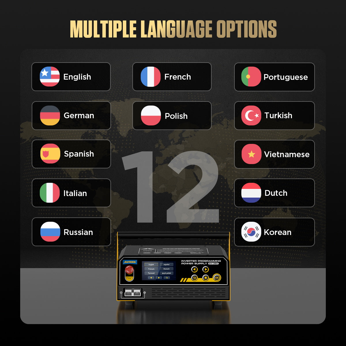 Az AUTOOL EM385 a legmodernebb autóipari tápegységek közé tartozik, amely egyesíti a professzionális ECU programozást, az intelligens akkumulátortöltést, valamint a megbízható indítási képességet egy kompakt, érintőkijelzős eszközben.