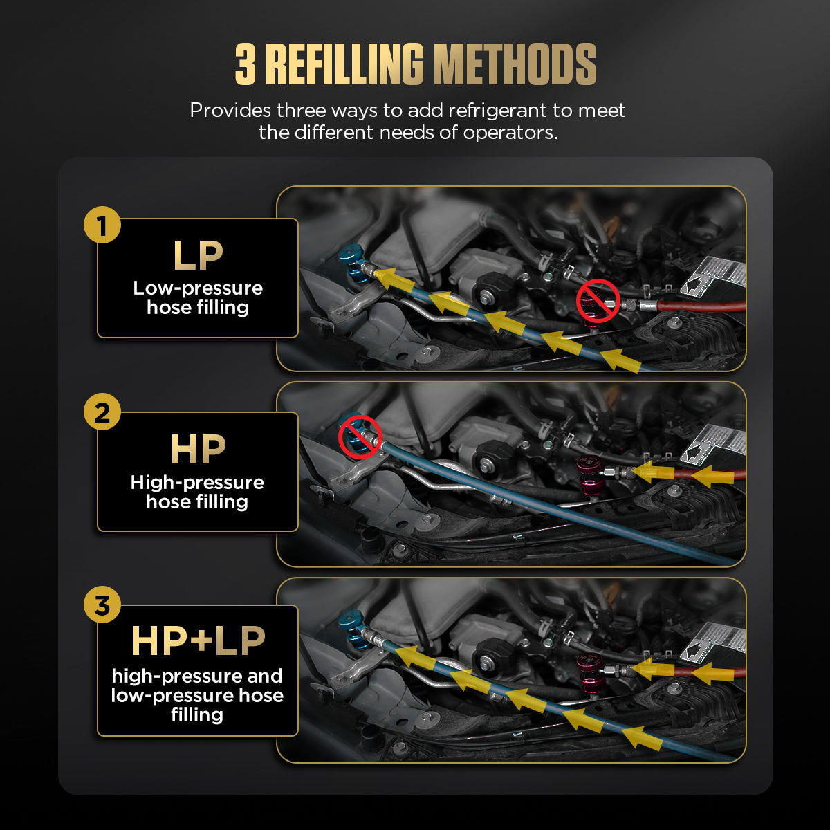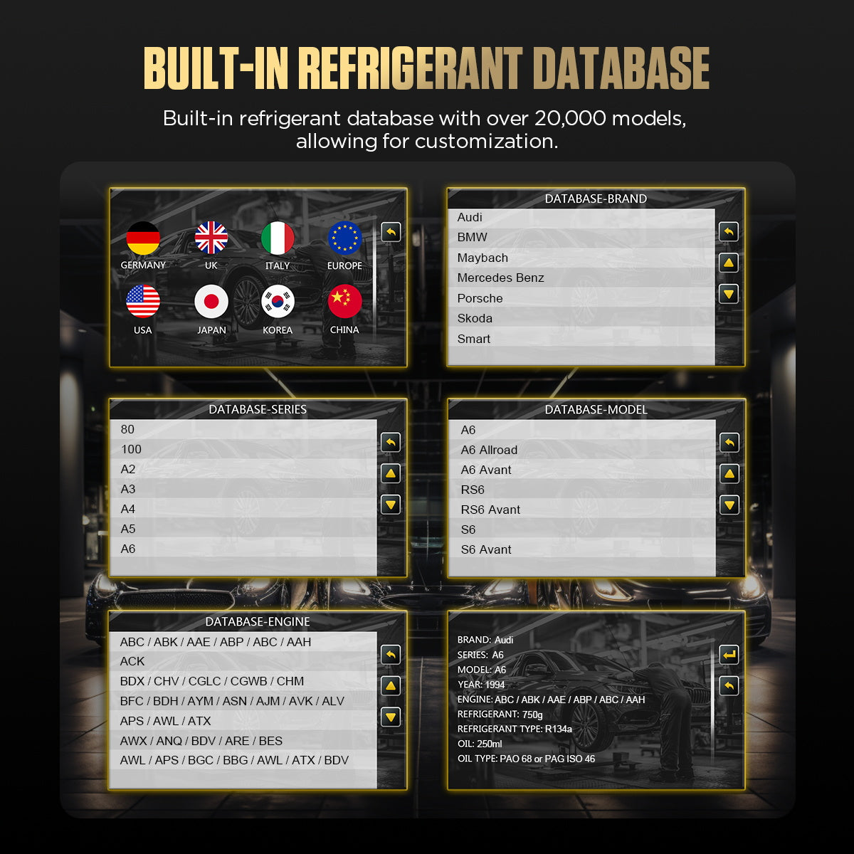 A berendezés automatikusan végrehajtja a hűtőközeg visszanyerését, vákuumozását és feltöltését, a felhasználó által előre beállított paraméterek alapján. A beépített járműadatbázis lehetővé teszi, hogy a megfelelő töltési értékeket automatikusan párosítsa a kiválasztott autómodellhez.