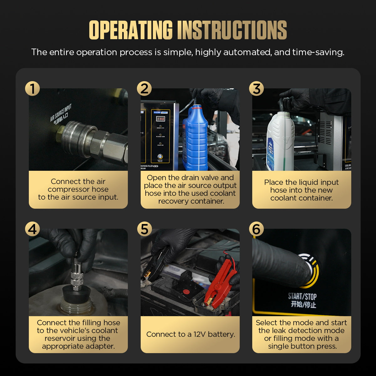 Az AUTOOL SC301 hűtőrendszer szivárgásvizsgáló és vákuumfeltöltő gyors, pontos diagnosztikát és hatékony hűtőfolyadék cserét kínál műhelyeknek és garázsoknak.