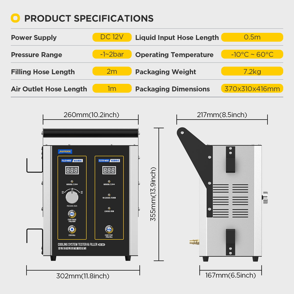 AUTOOL SC301 Hűtőrendszer Szivárgásvizsgáló és Feltöltő – Profi Autószerviz Eszköz