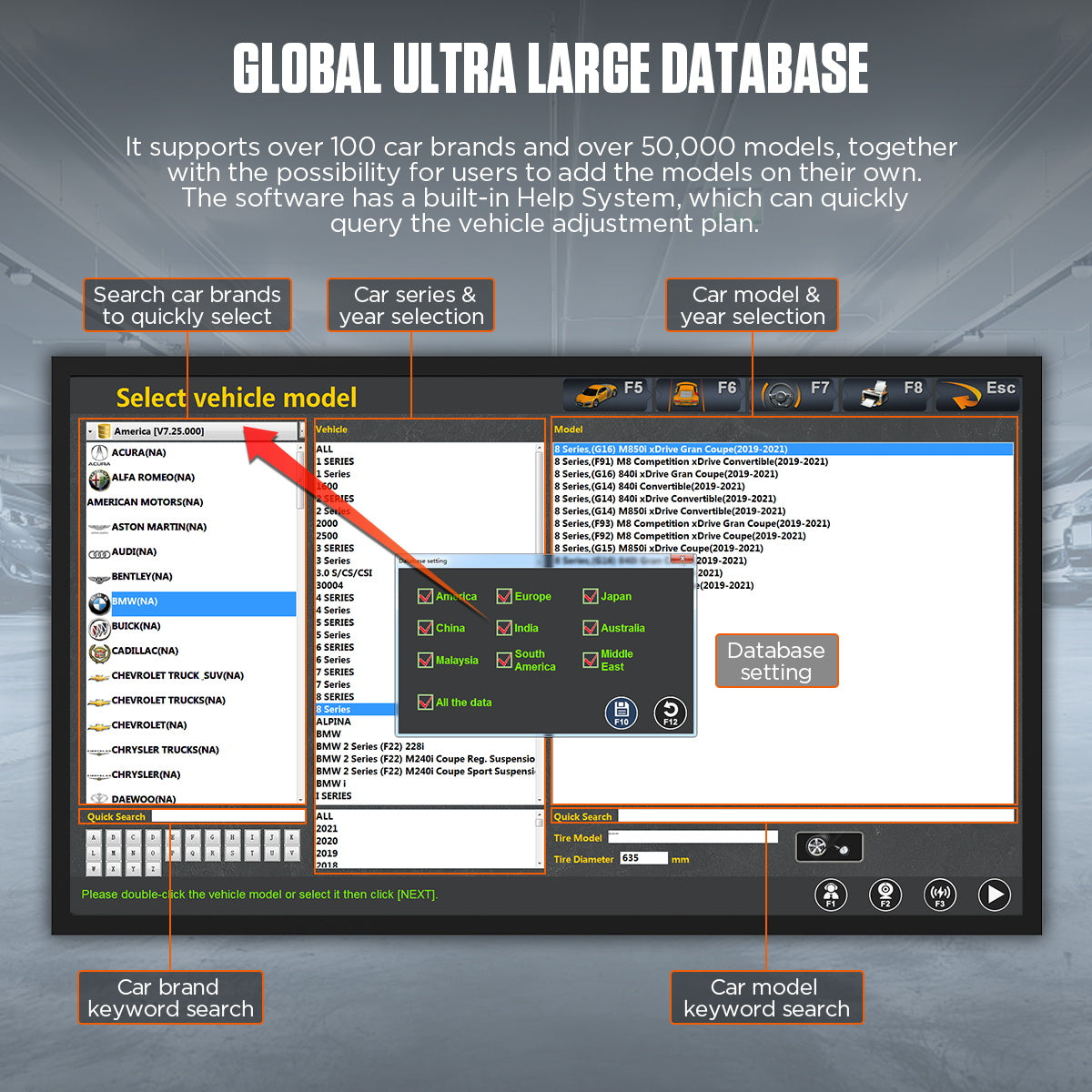Világszintű adatbázis: több mint 100 márka, 50 000 modell, saját modellek hozzáadásának lehetőségével.