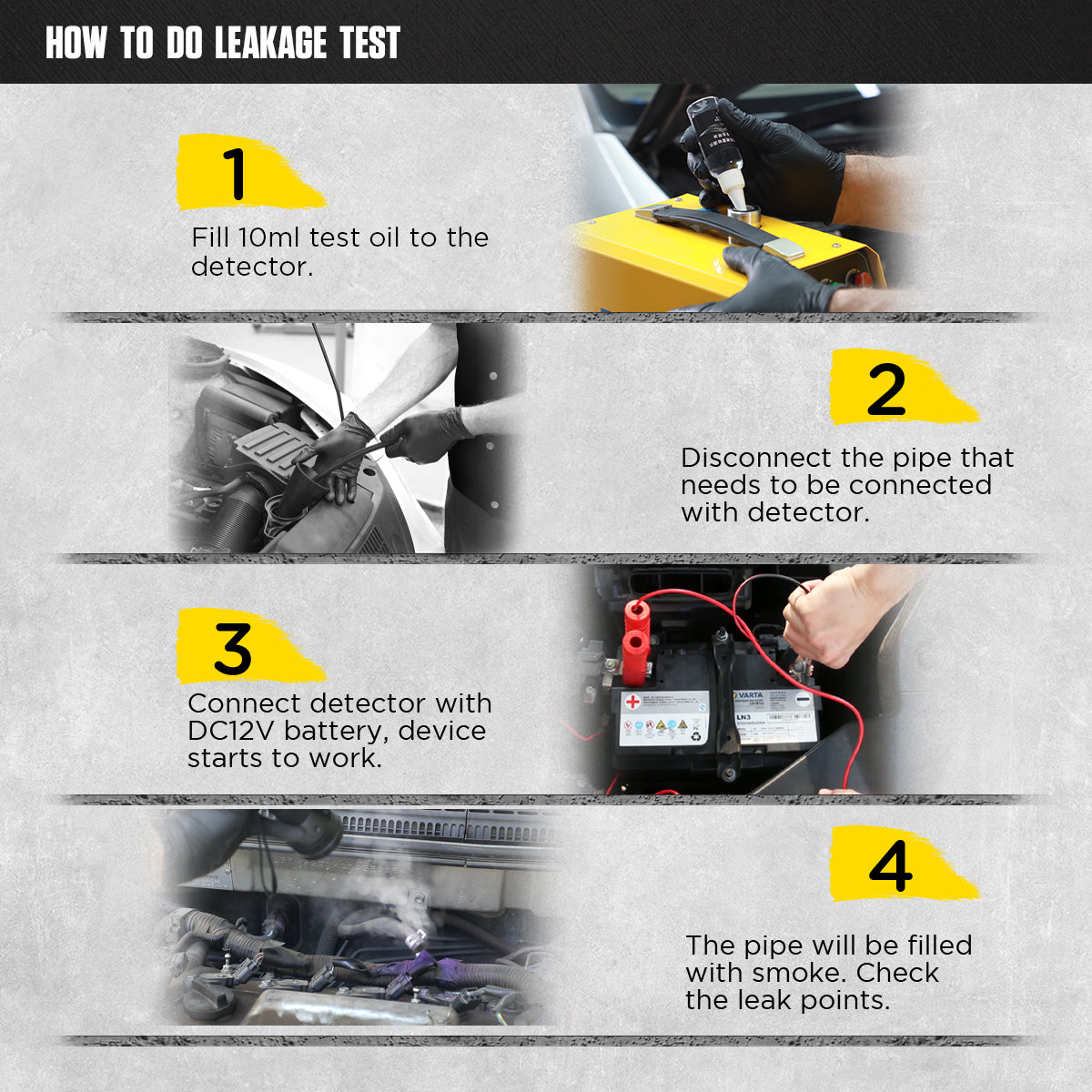 Széleskörű felhasználhatóság – EVAP rendszer, vákuumcsövek, szívócsövek, turbócsövek, kipufogórendszer és egyéb zárt rendszerek vizsgálatához, személyautóknál, motorkerékpároknál, ATV-knél, kishajóknál és könnyű tehergépjárműveknél.