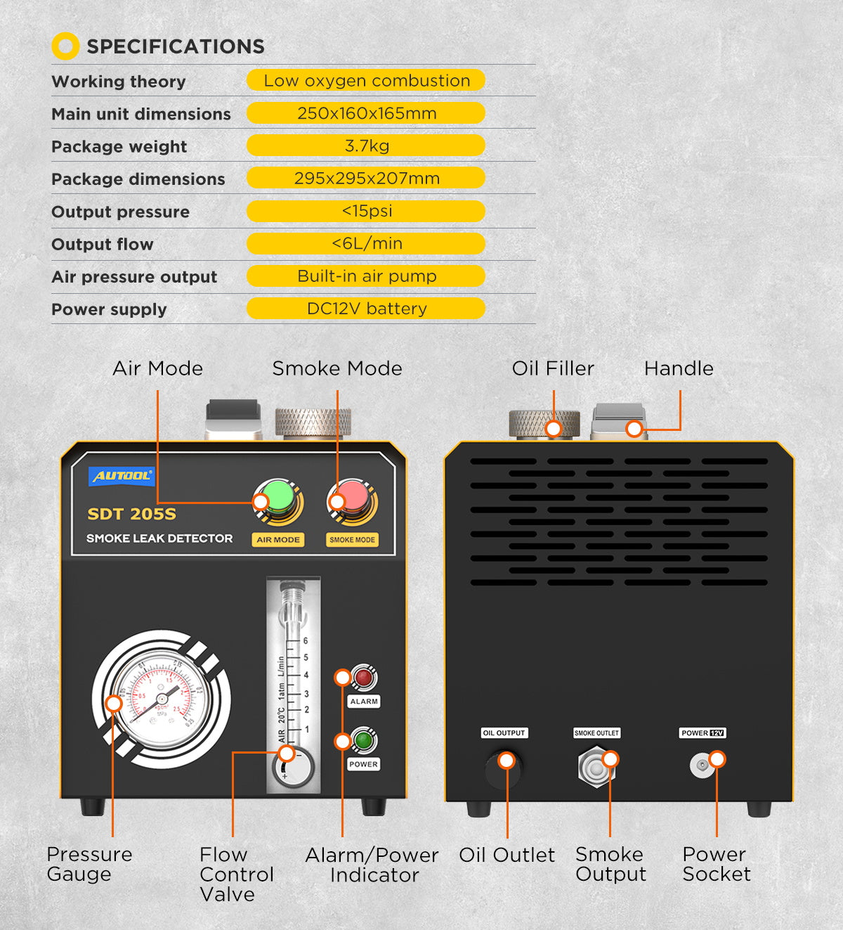 AUTOOL SDT205S Füstszivárgás Tesztelő – Garázsipari Eszköz