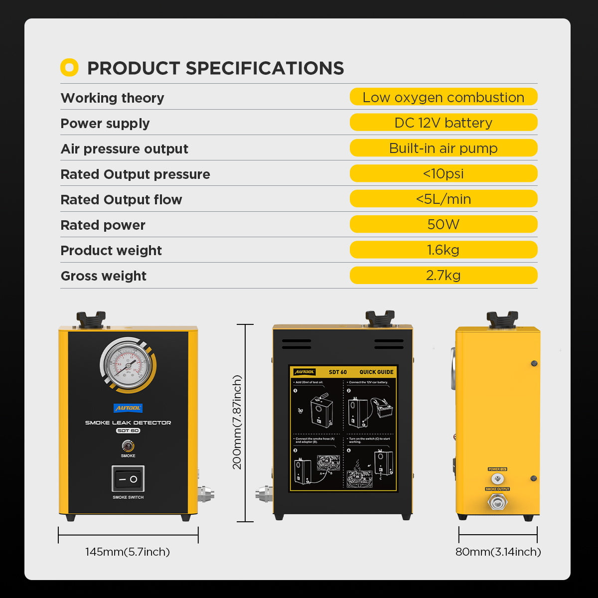 AUTOOL SDT60 Autódiagnosztikai Füstszivárgás Vizsgáló (Smoke Leak Detector) – EVAP Tesztekhez és Szivárgáskereséshez