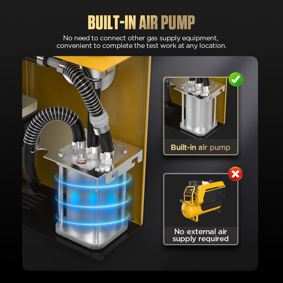 Beépített légszivattyú – Az AUTOOL SDT60 autódiagnosztikai füstszivárgás vizsgáló saját beépített kompresszorral rendelkezik, így nincs szükség külön levegőforrásra.