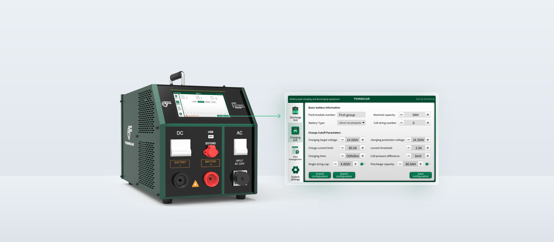 A THINKCAR CE EVP 902 a legmodernebb akkumulátor töltő és kisütő berendezés, amelyet kifejezetten lítium-vas akkumulátorok hatékony karbantartására, tesztelésére és szervizelésére terveztek. Széleskörű alkalmazhatóságának köszönhetően többféle feszültségszinten is használható, így ideális választás szervizek, kutatóközpontok és akkumulátor tesztelő műhelyek számára.