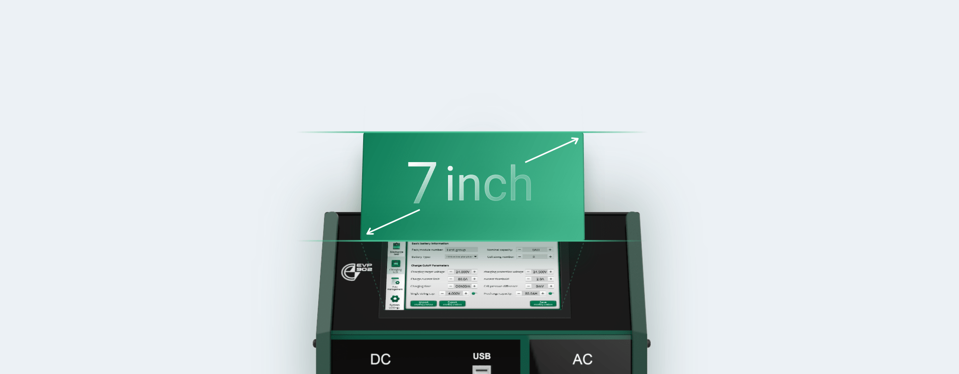 A készülék intelligens töltési és kisütési funkciókat kínál, amelyeknél a felhasználó saját maga állíthatja be a működési feltételeket, valamint az esetleges rendellenességekhez riasztási szinteket. A beépített 7 colos kijelző lehetővé teszi a folyamatok teljes körű vizualizálását, így minden munkafázis nyomon követhető.
