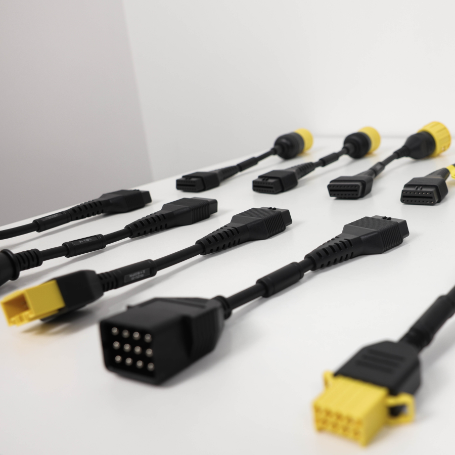 A készlethez tartozik 13 darab speciális, nem szabványos csatlakozó, amelyek segítségével számos régebbi vagy ritkább teherautó márka is diagnosztizálható. Ez jelentős előny a kisebb szervizek számára, amelyek különböző típusokkal találkoznak a mindennapokban.