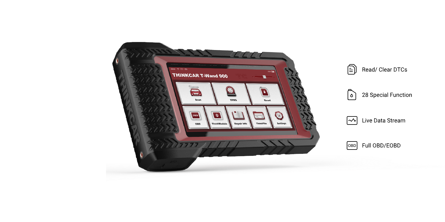 A THINKCAR T-Wand 900 egy fejlett TPMS szervizeszköz beépített diagnosztikai funkciókkal. Élettartamig ingyenes frissítésekkel, 28 karbantartási funkcióval és teljes jármű diagnosztikával segíti a szerelőket és műhelyeket.