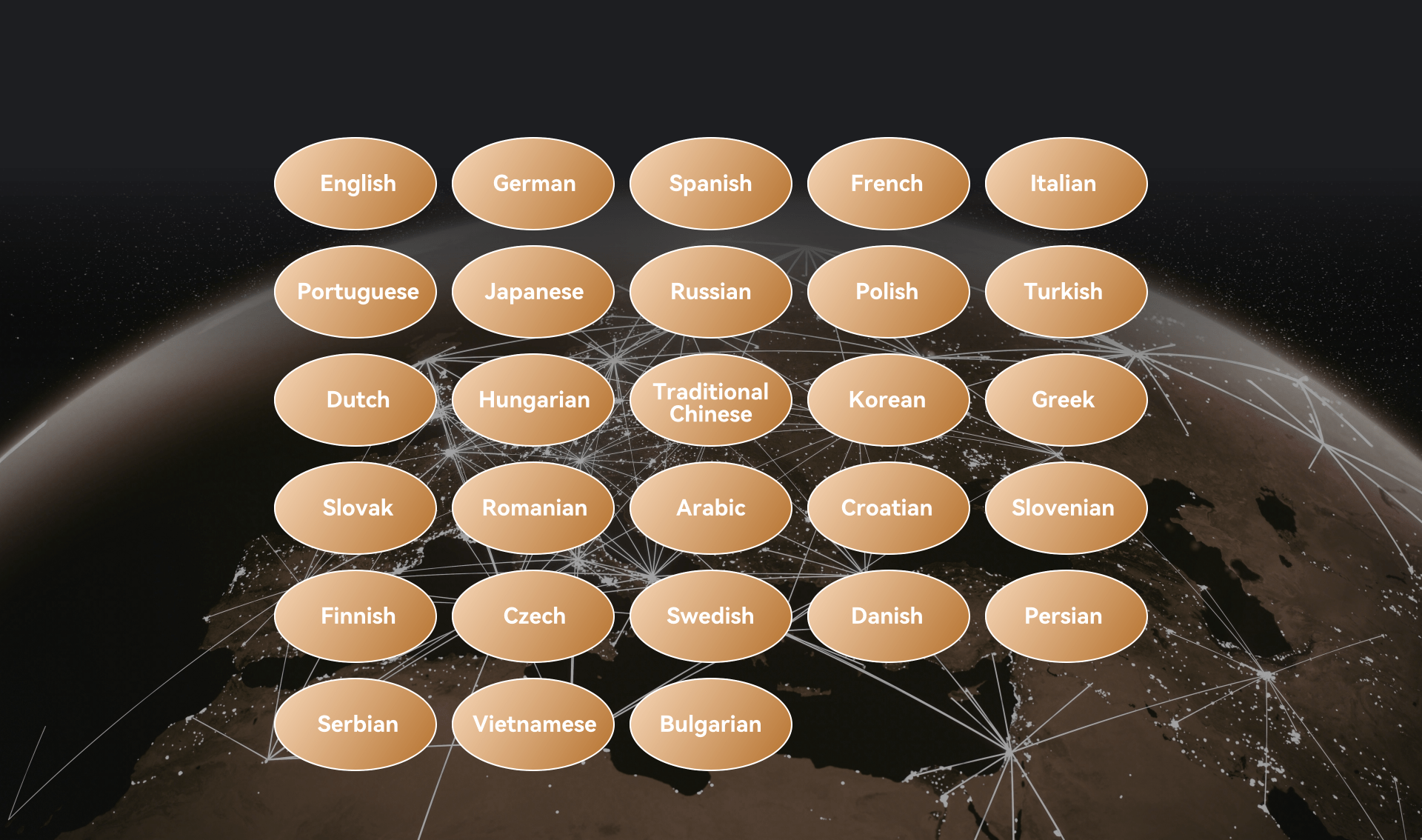 A készülék 28 nyelvet támogat, így nemzetközi műhelyek számára is ideális.
