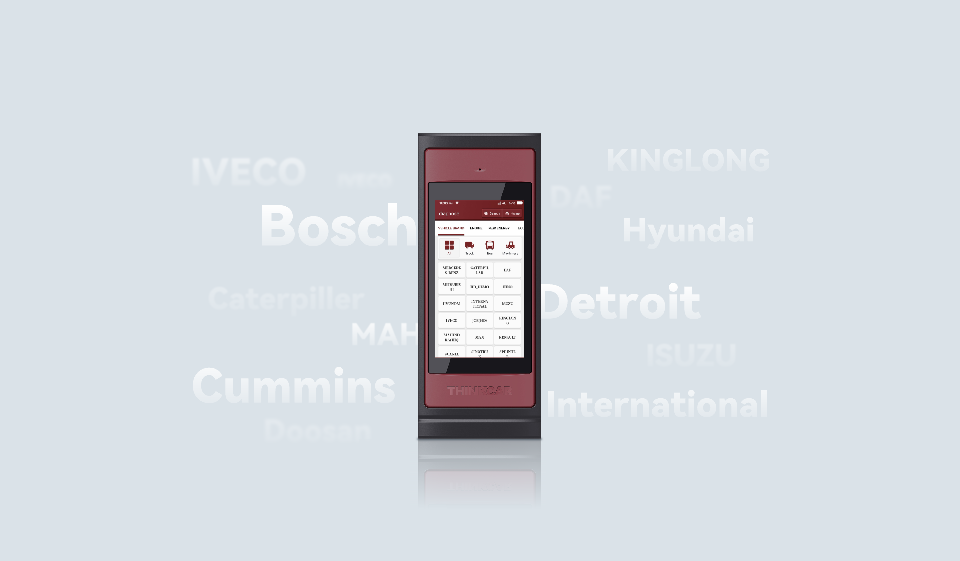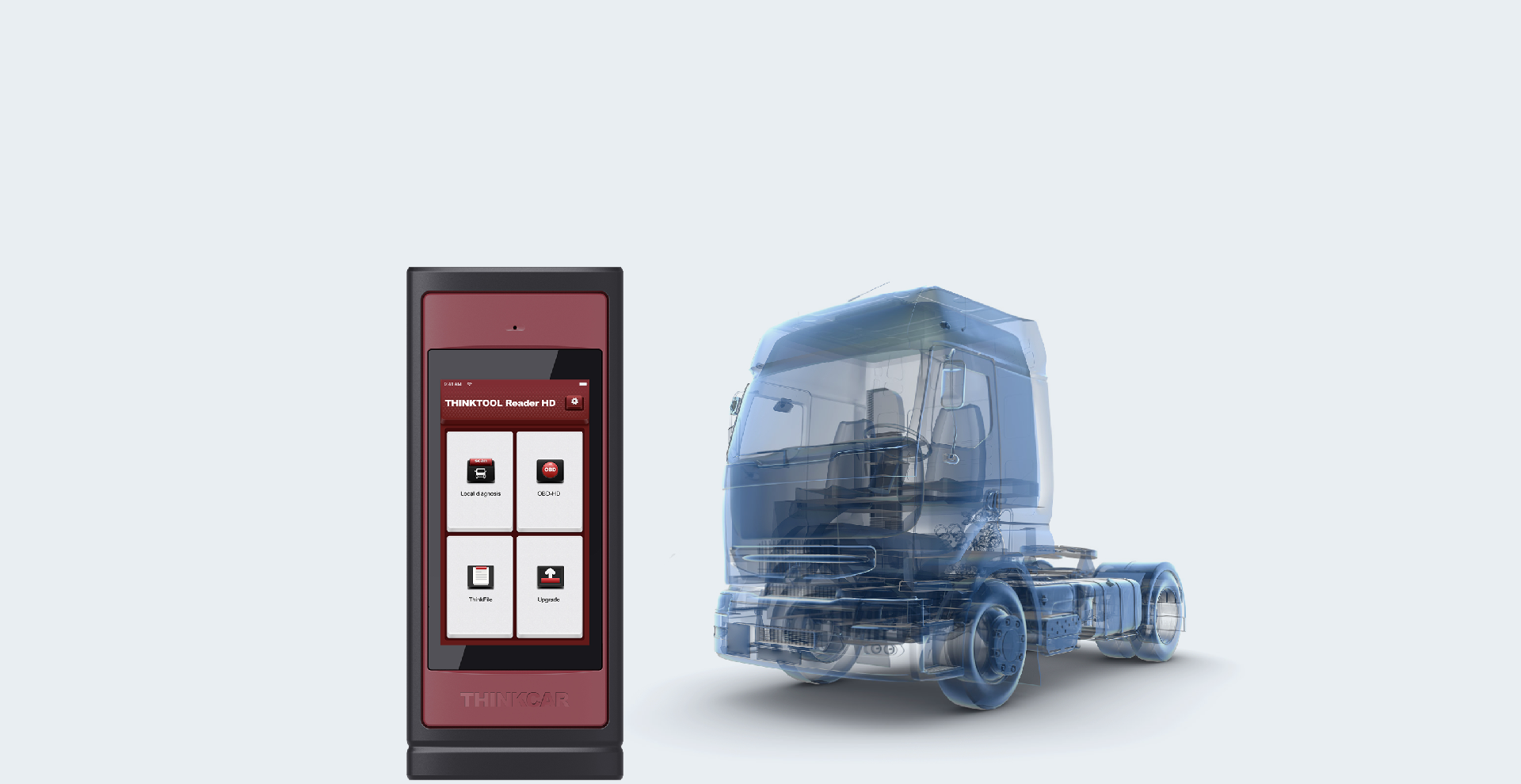 THINKTOOL Reader HD professzionális teherautó diagnosztikai eszköz 31+ márkához. Teljes rendszer diagnosztika, hibakód olvasás/törlés, élőadat, aktív tesztek, DPF regenerálás, injektor kódolás és paraméter programozás.