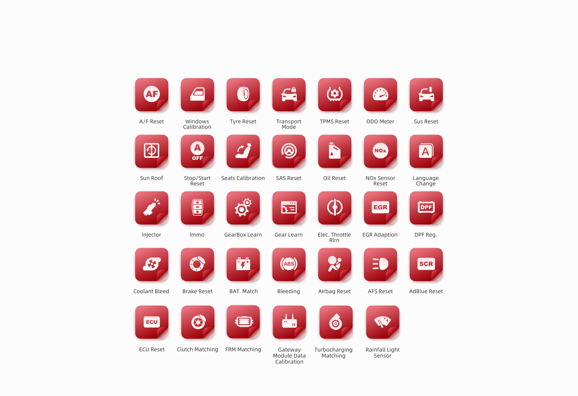 A THINKTOOL T77 összesen 34 szerviz és karbantartási funkcióval rendelkezik, többek között: