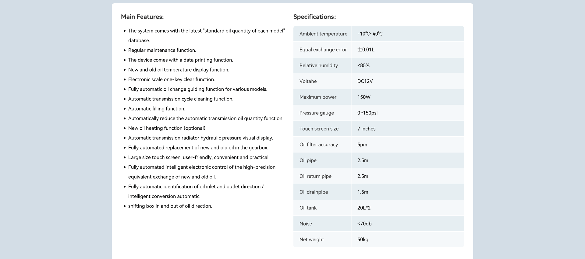 A TTE 780 pontos és gyors működésével, valamint felhasználóbarát kezelőfelületével megkönnyíti a szerelők munkáját. Az olajcserét teljesen automatikusan végzi, miközben minimalizálja az emberi hibák lehetőségét és biztosítja, hogy a régi olaj maradéktalanul lecserélődjön.