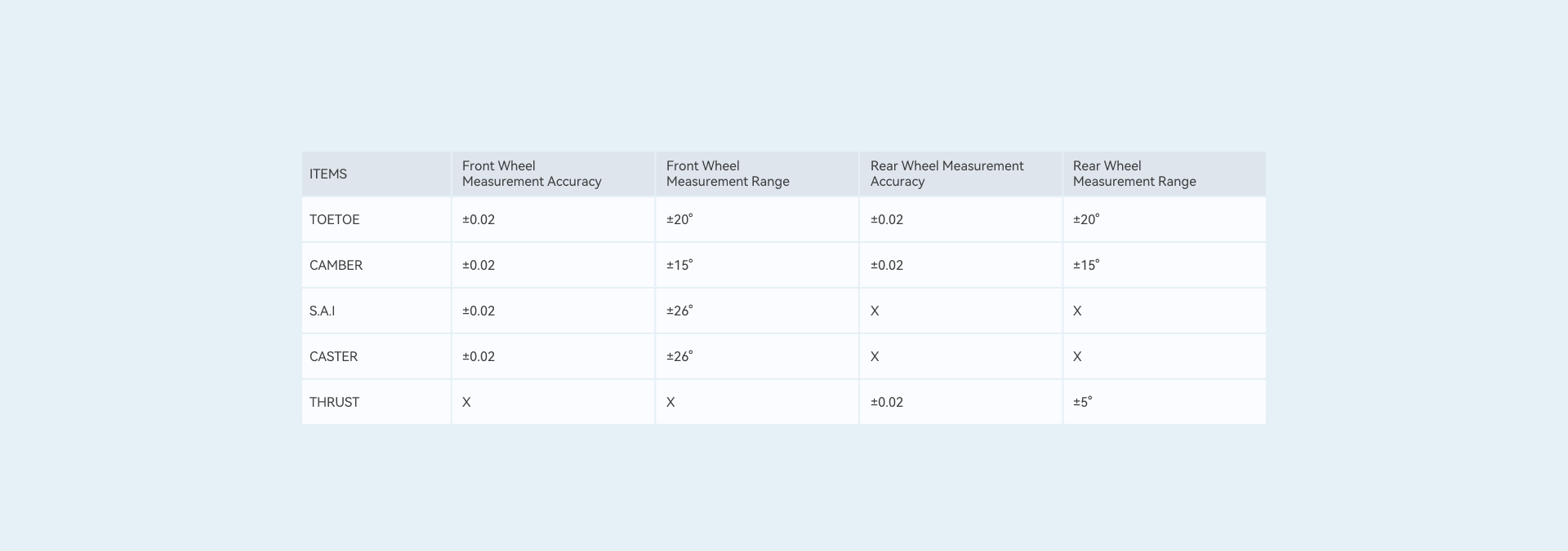 A rendszer 98%-os autótámogatással rendelkezik, így szinte minden személygépkocsihoz alkalmazható. A TWA 825 fix telepítésű, míg a TWA 825M mozgatható kamerarendszerrel van felszerelve, így rugalmasan alkalmazható különböző műhelykörnyezetekben.